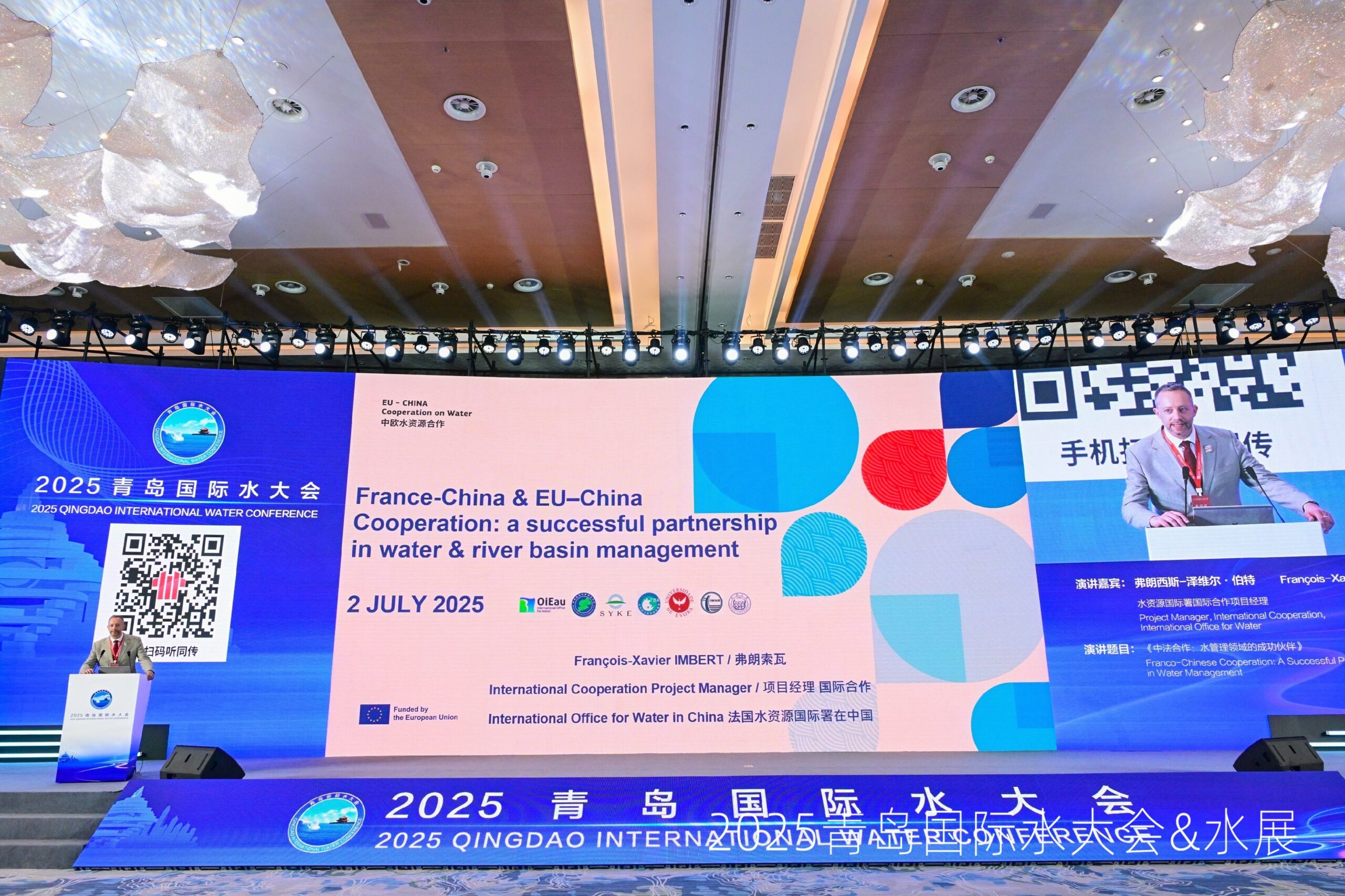 Basándose en la labor de la Asociación China-Europa para el Agua (CEWP), creada en 2012, el programa de cooperación entre la UE y China en materia de agua, financiado por la Unión Europea, se lleva a cabo desde 2024 por la Gesellschaft für Organisation, Planung und Ausbildung (GOPA), en colaboración con la Oficina Internacional del Agua (OiEau), que lidera la prioridad temática «gestión de cuencas y hermanamiento». Este proyecto estructura un diálogo en profundidad entre los gestores de cuencas europeos y chinos sobre soluciones basadas en la naturaleza, a través de la prevención de inundaciones y sequías, la restauración de los ecosistemas acuáticos, la gestión cuantitativa y cualitativa de los recursos hídricos y la gobernanza entre cuencas. Se presta especial atención a la modernización de los sistemas de información y los gemelos digitales, que son esenciales para mejorar la gestión de riesgos y la planificación hidrológica.