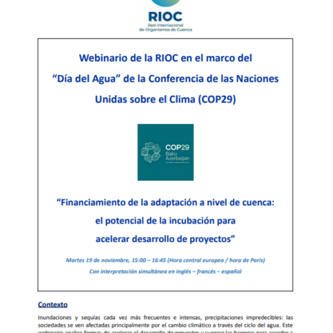 Webinario de la RIOC en el marco del día del «agua» de la Conferecnia de los partes de las Naciones Unidades sobre el clima (COP29)