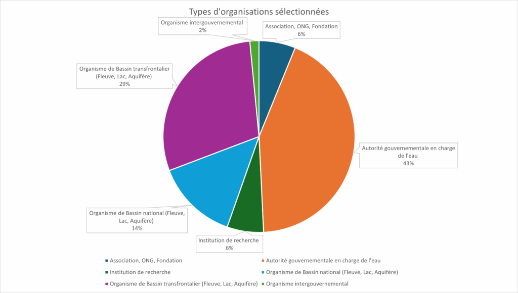 - une répartition équilibrée entre différents types d’organismes (autorités de bassin, agences nationales de l’eau, structures de coordination transfrontalières, etc.).