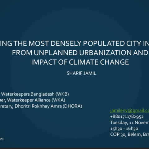 • Protéger la ville la plus densément peuplée au monde contre l’urbanisation sauvage et les effets du changement climatique – Waterkeepers Bangladesh
