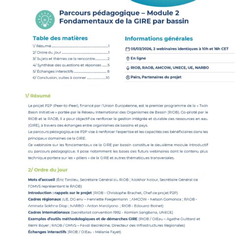 Peer-to-Peer (P2P) – Parcours pédagogique, Module 2 –Fondamentaux de la GIRE par bassin – Synthèse