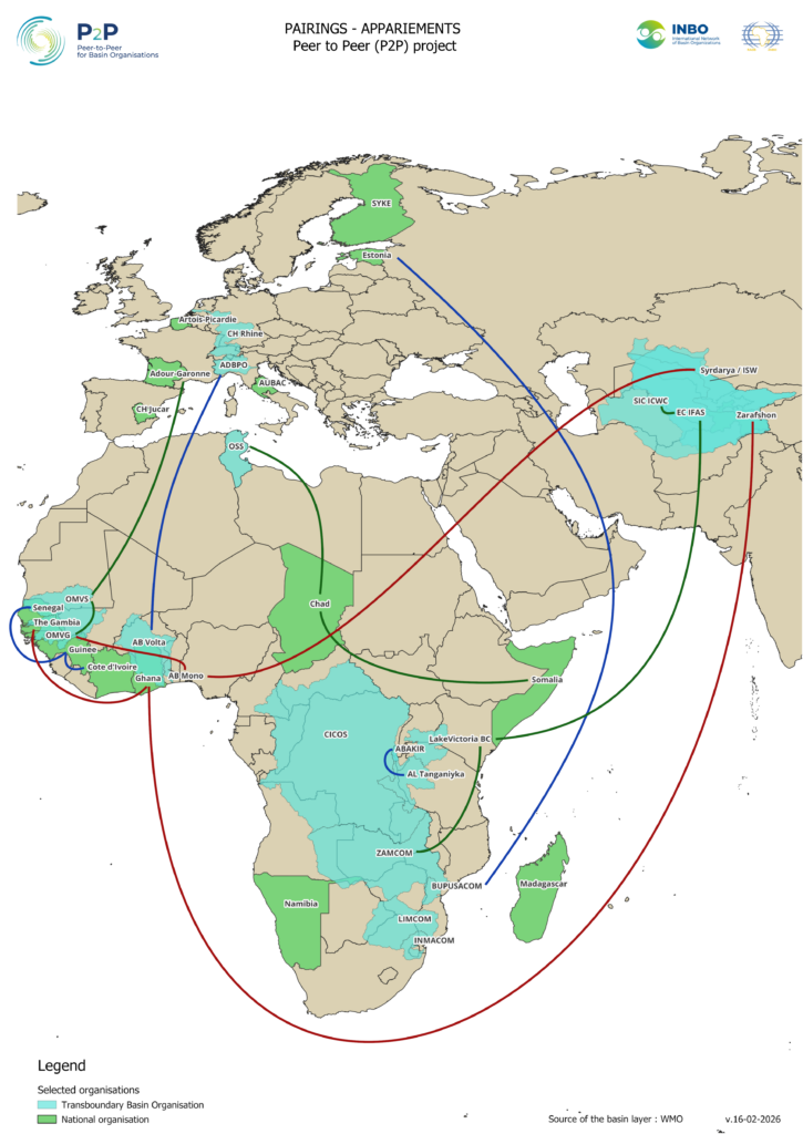 The Peer-to-Peer (P2P) project is the first programme of the Twin Basin Initiative, led by the International Network of Basin Organisations (INBO) with the support of the African Network of Basin Organisations (ANBO). This project is supported by funding from the European Union.