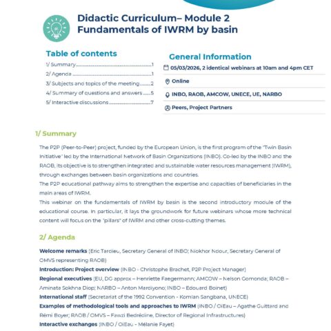• Peer-to-Peer (P2P) Didactic Curriculum, Module #2 – Fundamentals of IWRM at basin Level